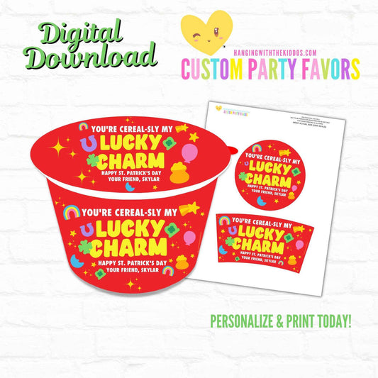 St. Patrick's Day Cereal Cup Label| Personalized Cereal Party favor|Instant Download