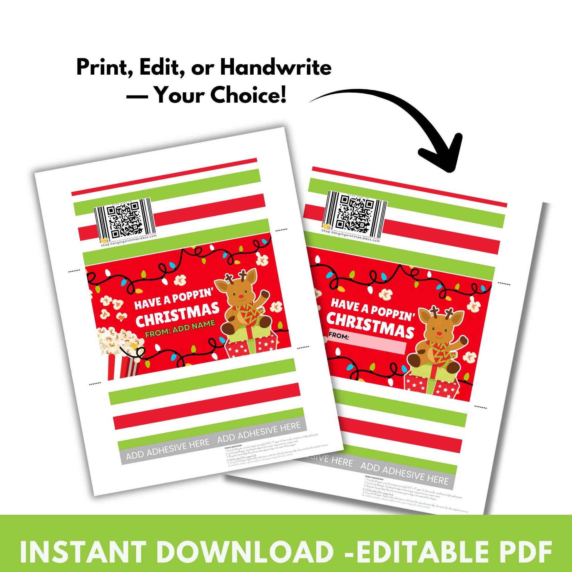 - A high-resolution PDF (8.5″ × 11″) sized to wrap standard microwave popcorn bags